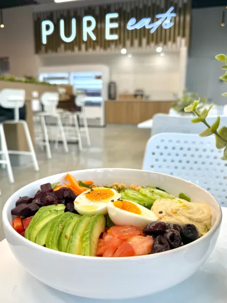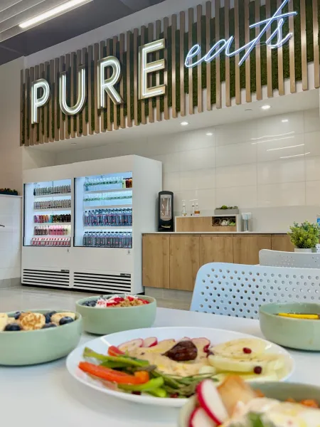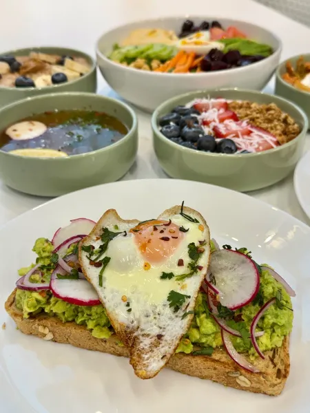 OUR HEADQUARTERS IN LIC IS DEDICATED TO GUT HEALTH THROUGH FERMENTED AND WHOLE FOOD OPTIONS. THIS LOCATION FEATURES OUR YOGURT AND COTTAGE CHEESE BAR ALONG WITH OTHER INTENTIONAL DISHES.
